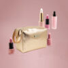 The custom women’s travel makeup pouch, featuring a stylish gold cosmetic bag design, offers a convenient and elegant solution for ladies to organize and carry their beauty essentials.